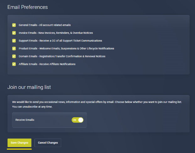 Note: By updating your details in the Billing Panel, you are not updating the credentials on your panel logins for the Web, Game, VPS, and Dedicated Server panels.